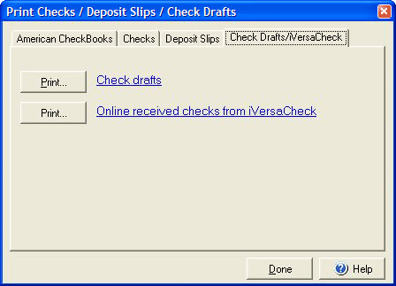 Drafts/FreeQuickWire tab will allow you to print Check Drafts for customer