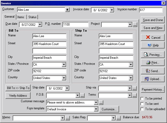 the Invoice box to immediately print, e-mail, or upload your invoice.