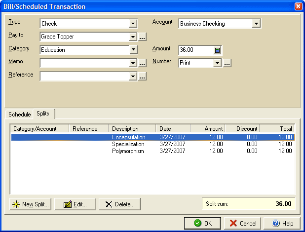 > New Transaction from the File menu. To edit an existing transaction, click on