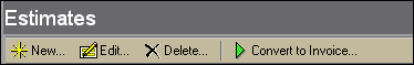 To create a new Estimate click the New button. To edit an existing Estimate, highlight the estimate in the list and click the Edit button and to permanently remove an existing Estimate click the Delete button You can convert an estimate into a full invoice at any time by clicking the Convert to Invoice button. |