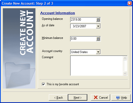 - Select the type of account: Bank, Cash, Credit Card, Money Market, Other