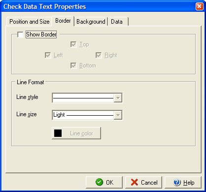 Border Tab The Check Data Text Properties can be opened by double clicking any text data on the document or by right clicking a selected text data item and selecting Object Properties from the context menu.