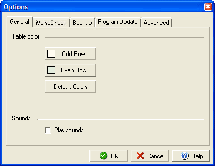 General Tab The Options feature, found under the Tools menu, allows you to customize certain elements of the VersaCheck program.