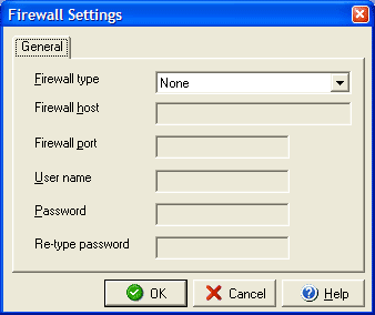 The Firewall Settings dialog allows you to set information for VersaCheck to work in conjunction with your network firewall. From the Options dialog click the Advanced tab and click the Firewall button.