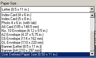 In the paper size section select User Defined from the bottom of the list. (image 1)