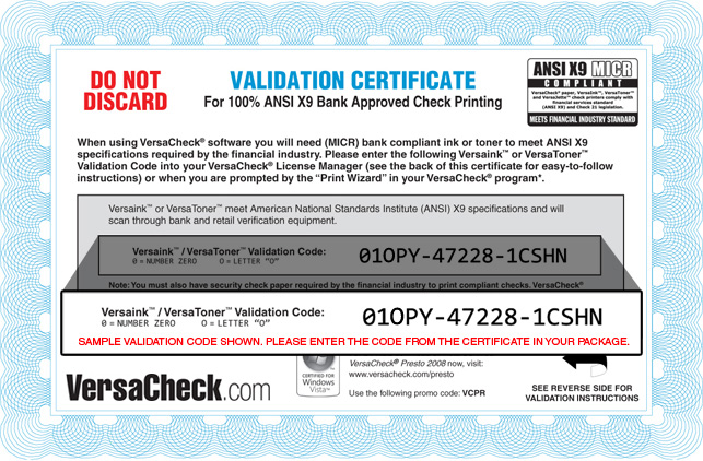 For details and updated information please establish Internet connection and click here. You can also receive more information by calling +1.858.675.1095 or you can visit us online at www.versacheck.com