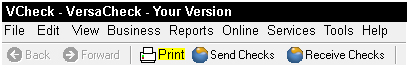 2. Open your version of VersaCheck. Select Print from the second toolbar across the top of the screen.