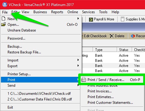 2) Click PRINT/SEND/RECEIVE at the top of the program or click FILE - PRINT - PRINT/SEND/RECEIVE.