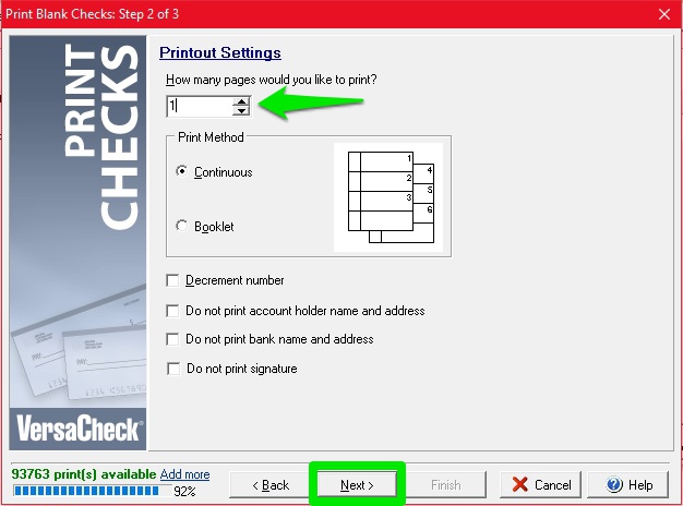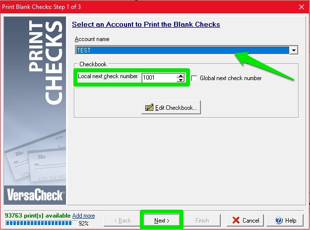 Printing Blank Checks in Versacheck