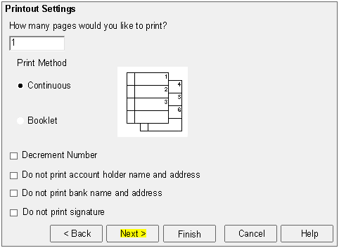 13. Select "No" to print a test check, if asked, this was completed earlier.