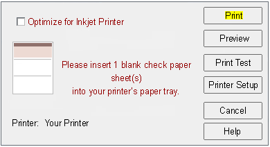 14. Select "Print" to print out a check or cancel all the windows to start the process of printing checks over. The changes you made will be saved.