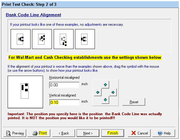 Retail stores use different types of scanners than the bank and these scanners tend to scan lower on the check. Use the directions below to adjust the bank code line. The bank will still be able to read the check once the changes are made.