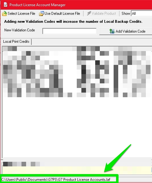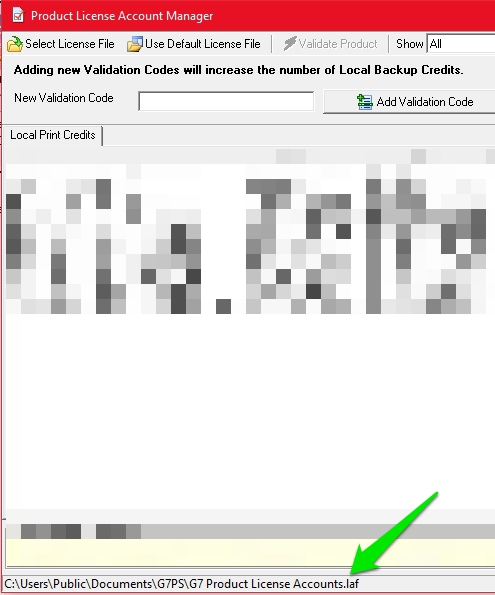 3) At the bottom of the license manager is the location of the current license file, which is the G7 PRODUCT LICENSE ACCOUNTS.LAF. You need to copy that file and place it on a network in a shared folder that every computer you are going to be using can see.